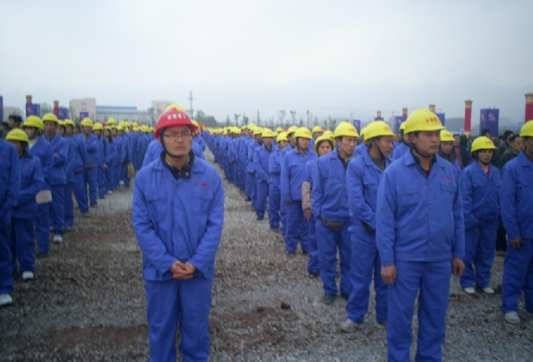 圖為參加開(kāi)工儀式的安徽建工施工隊(duì)伍